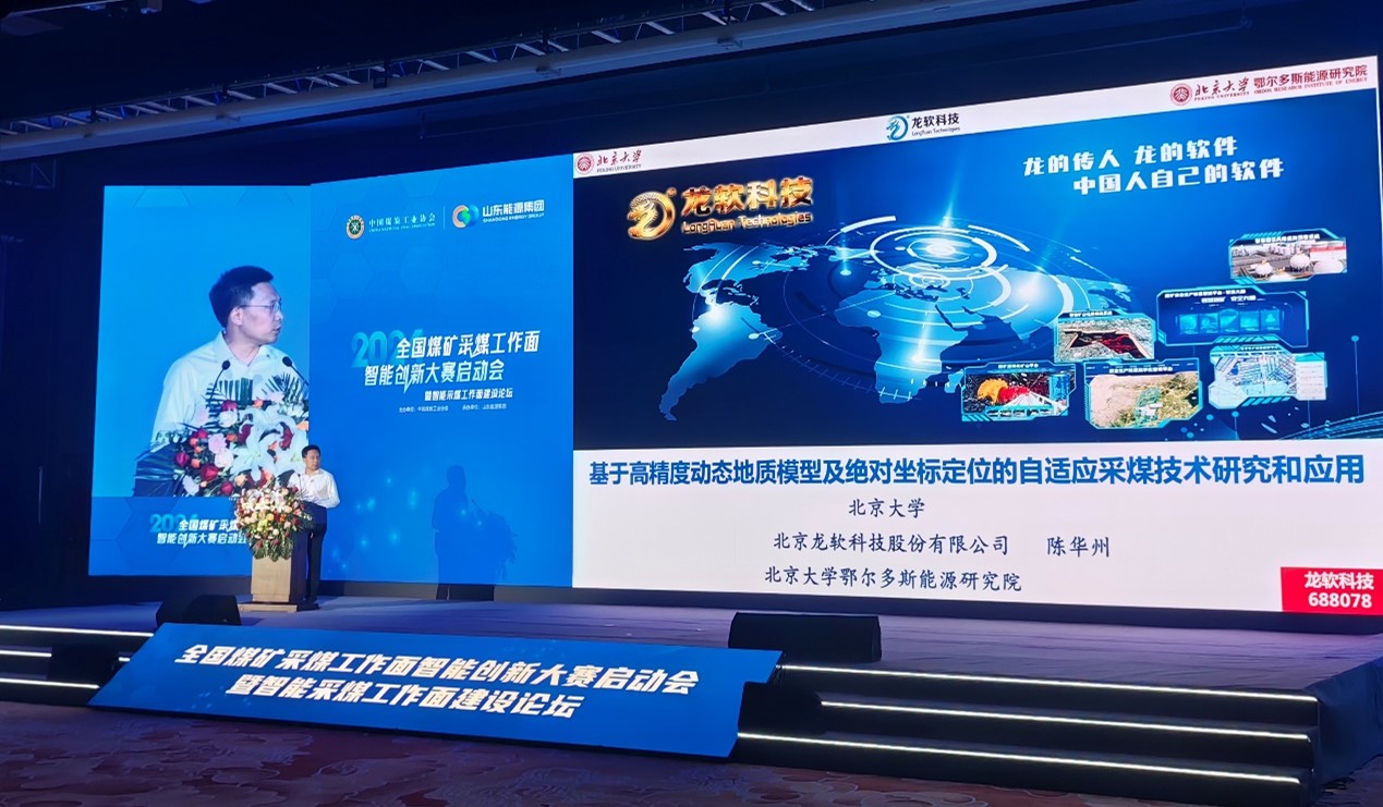 龙软科技受邀参加会议并作《基于高精度动态地质模型及绝对坐标定位的自适应采煤技术研究与应用》的主题报告,向与会代表介绍了公司在采煤工作面智能化建设方面的最新创新成果和应用案例。龙软科技经过多年自适应采煤技术研究,已经形成“透明化地测模型+自动调平陀螺全站仪精确定位+数字孪生管控+正射校正视频流”四大关键技术的基于精确时空信息的采掘工作面少人或无人自适应截割模式,这些技术与2024年4月28日七部门联合印发的《关于深入推进矿山智能化建设促进矿山安全发展的指导意见》中提倡的重点攻克透明地质、井下精准定位导航、矿岩识别、采掘设备姿态精准控制等“卡脖子”技术高度契合。