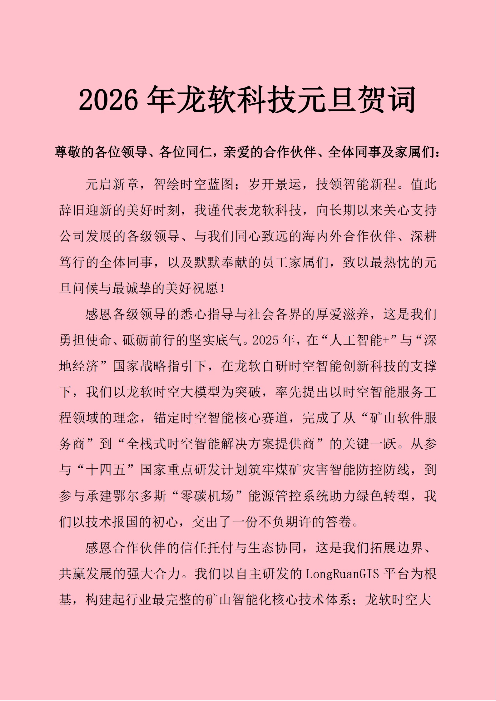 公司联合北京大学鄂尔多斯能源研究院、中国大唐集团能源投资有限责任公司共同研发推出“龙软时空大模型1.0”,该模型突破传统大语言模型三大瓶颈:(1)实现“矢量+栅格”多模态时空数据的智能处理,填补了现有AI在工程矢量图形处理领域的技术空白,让AI真正“看懂工程图形”;(2)深度融合矿山各专业场景的私域数据,构建起“矿博士、智能安监员、全能技术员、矿长助手、智能运维工程师”五大角色化应用,覆盖从设计、安全、生产到运维的全流程;(3)构建“时空感知-精准决策-高效执行”的矿山人工智能应用新范式,在大唐能投、国家能源集团、永煤集团、晋能控股等标杆项目中,使安全生产数据处理效率、决策支持实用性大幅提升。中国科学院金之钧院士评价其“是政产学研用深度融合的典范,为工程智能化提供了强大智能平台”。